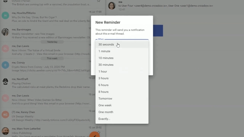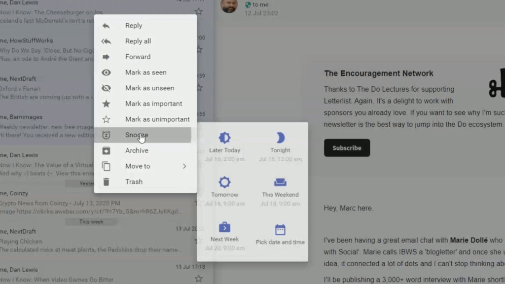 Funzione per posticipare la visualizzazione delle email, permettendo di concentrarsi su ciò che è importante.